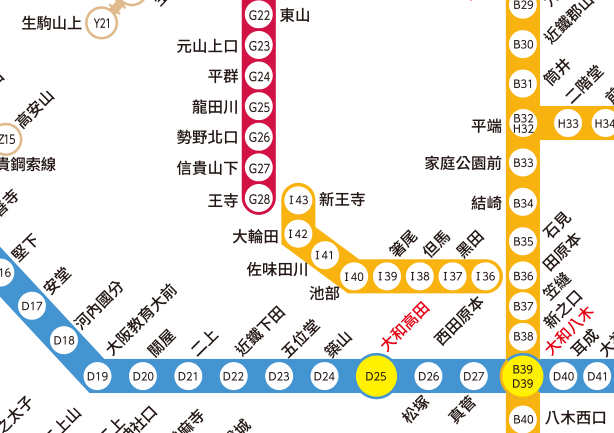 點擊路線圖就會擴大顯示。點擊車站編號後再點擊顯示出的車站名稱,有關車站的資訊就會顯示出來。