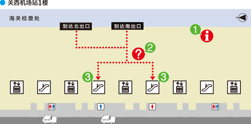 ① 从机场到达大厅前往南海线“关西机场站”