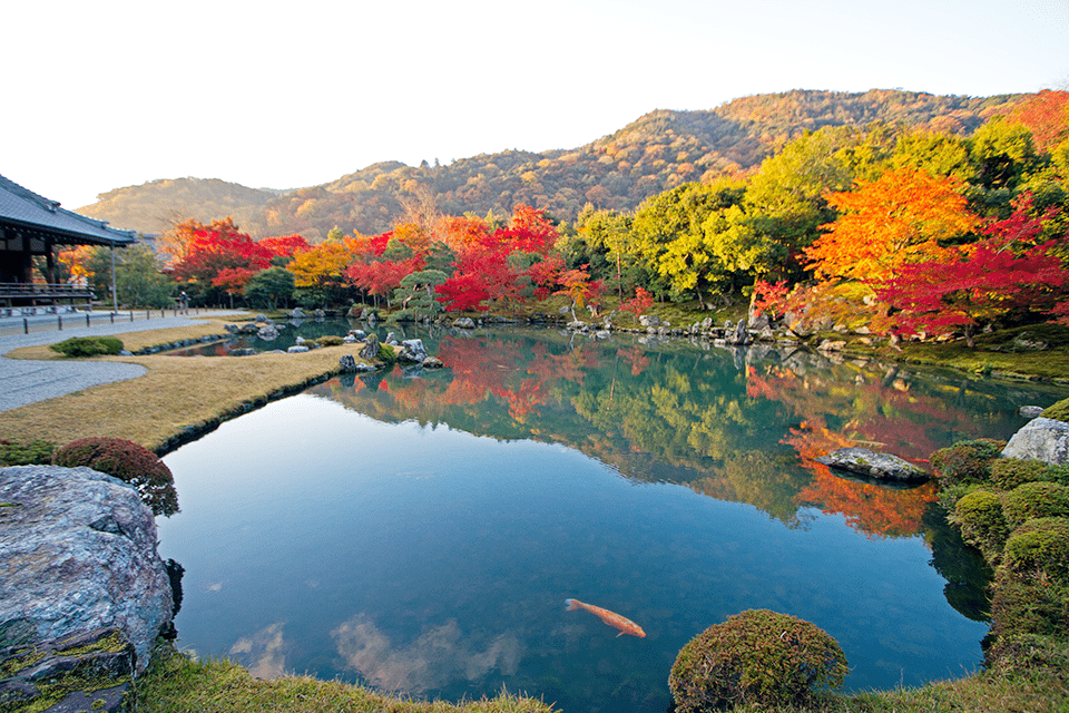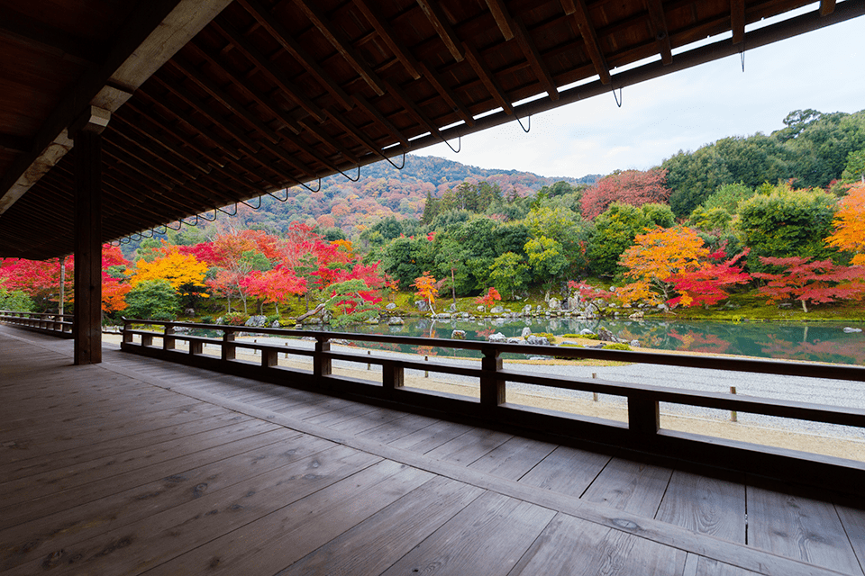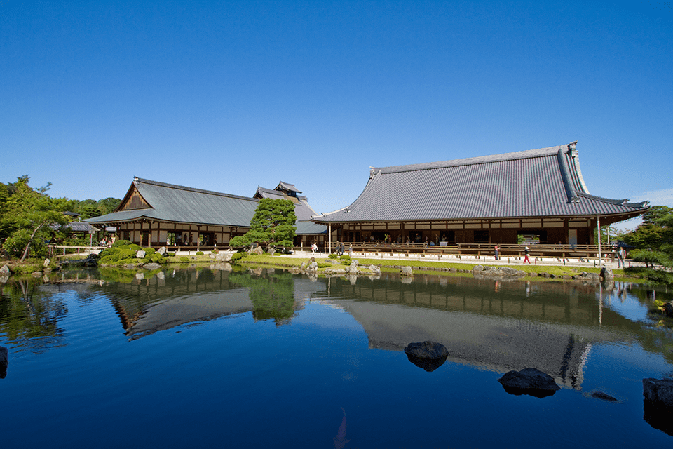 被指定为世界遗产,京都具代表性的禅寺天龙寺位于京都岚山地区。此美丽的名胜欢迎寻求心灵平静的游客到此一游。在这里,游客能参加定期举办的坐禅会,此外只要预约就能随时“抄写佛经”,以体验真正的禅。绿荫繁茂,美丽的庭园数百年来一直保持着它原有的景致。