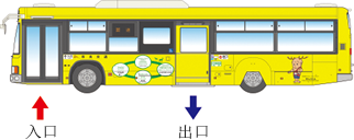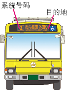 巴士车厢的前方,后方,左侧方附有目的地显示 器。请确认巴士的系统号码,目的地后再上车。