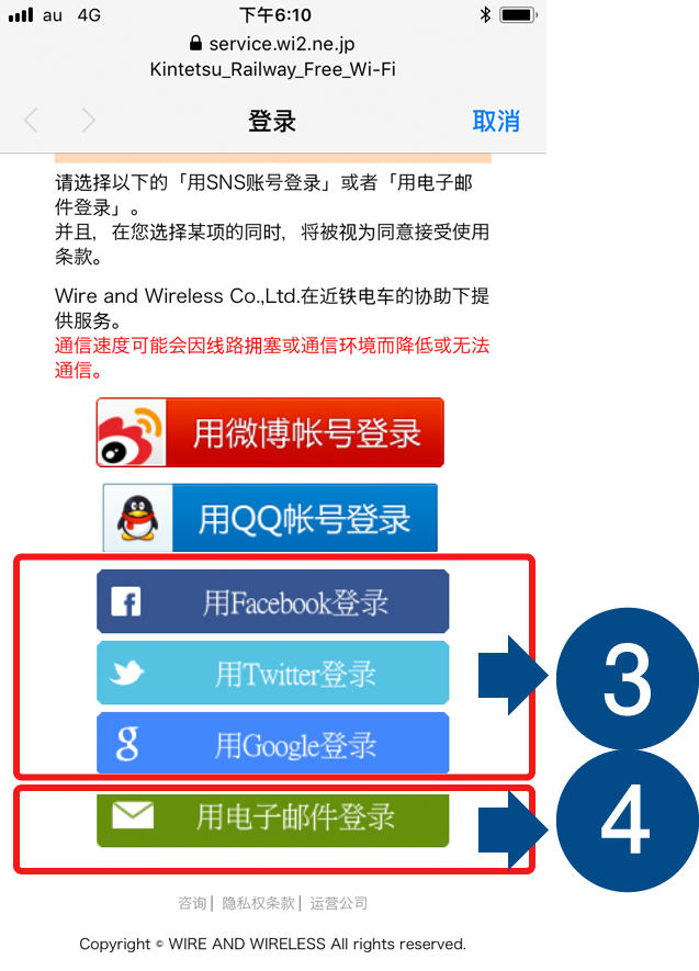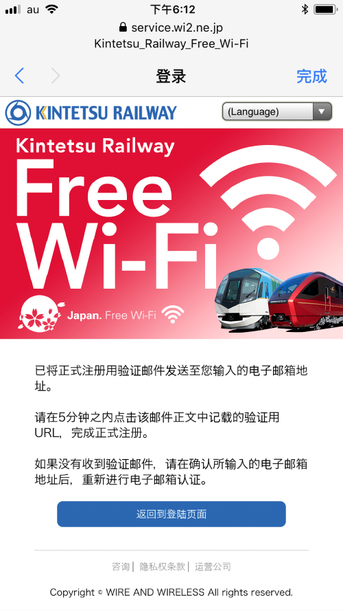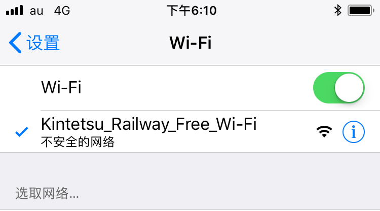 打开“Wi-Fi”并从列表中选择“Kintetsu_Railway_Free_Wi-Fi”或“Kintestu_Railway_Free_Wi-Fi2”。