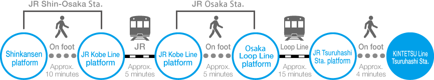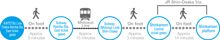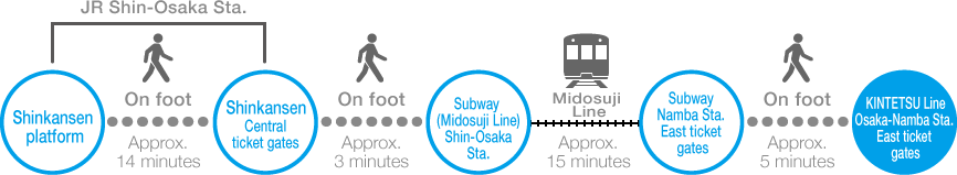 Osaka-Namba Sta. on the KINTETSU Line → JR Shin‐Osaka