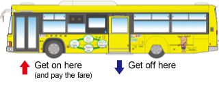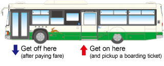 For a back-boarding bus, pick up a boarding ticket when you board the bus, and show the ticket (printed with day of use) to the crew or station attendant when you get off the bus.