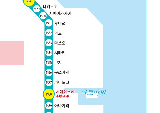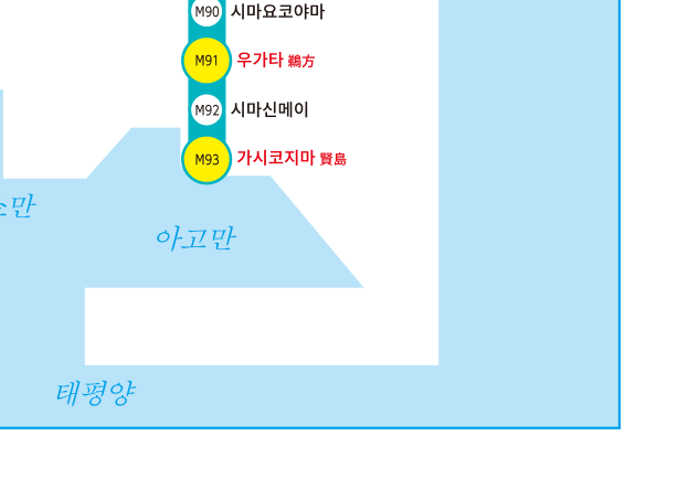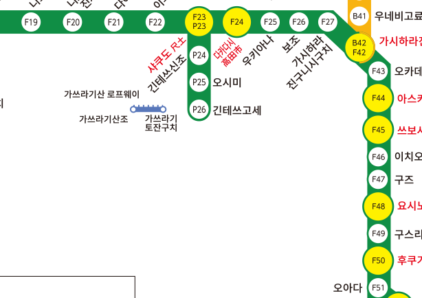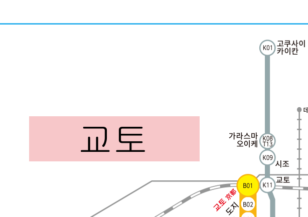 노선도를 클릭하면 확대됩니다. 역 번호를 클릭해서 표시된 역명을 클릭하면 역에 관한 정보가 나타납니다.