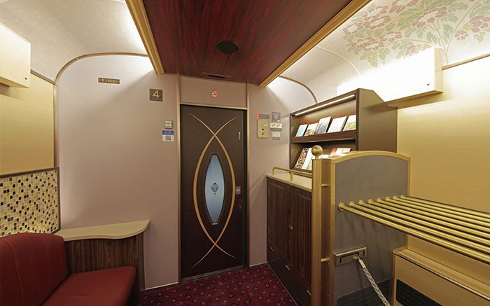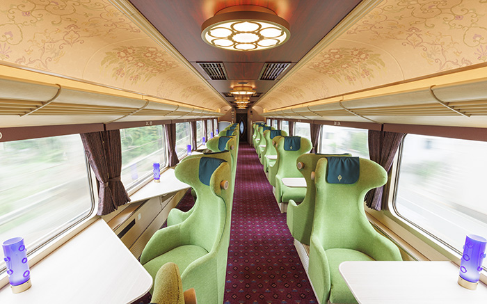 판매 카운터에서는 전속 어텐던트가 상주하여 나라 현산품을 사용한 디저트와 차량 내 한정 오리지널 상품을 비롯해 소프트 드링크와 안주 등도 판매합니다.