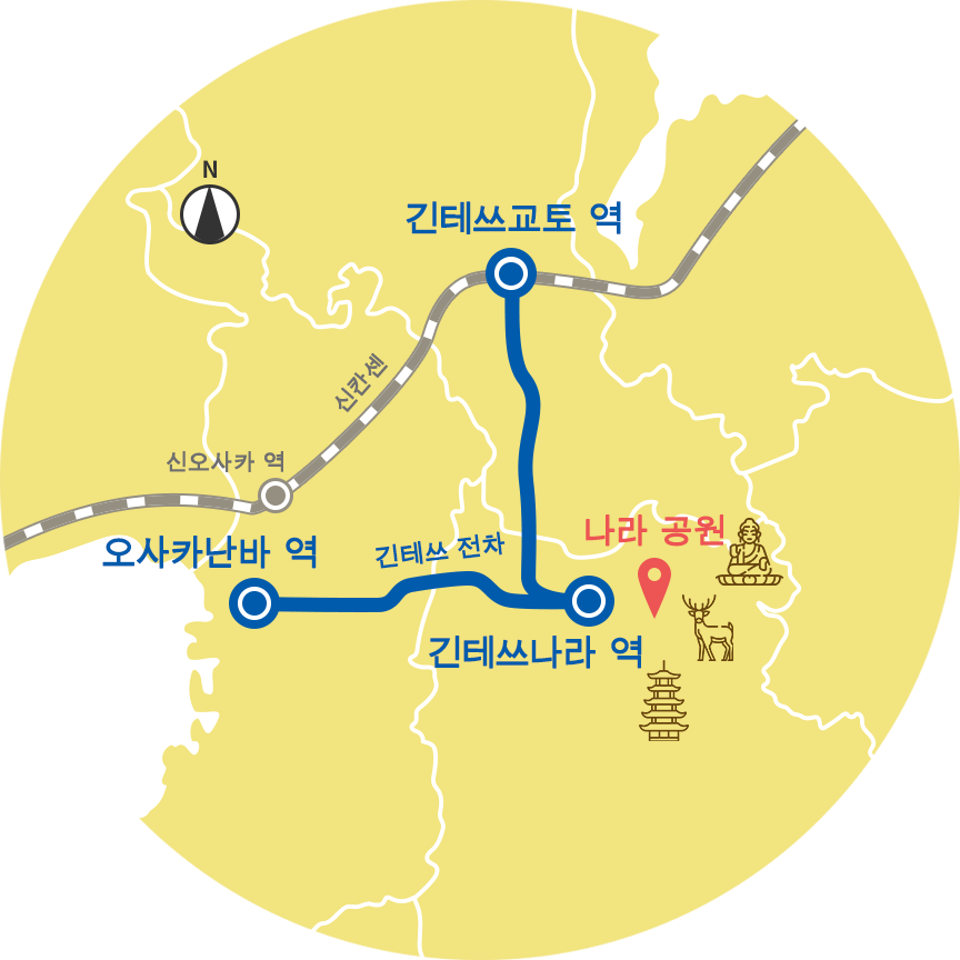 긴테쓰 전차는 오사카(난바)나 교토에서 긴테쓰나라 역까지 다이렉트로 연결하고 있으므로 편리합니다.