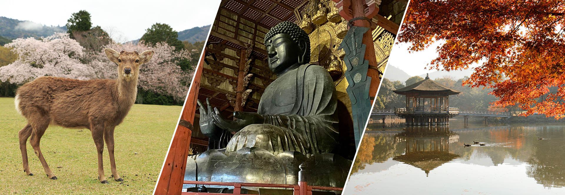 사슴과 대불 등 나라 공원 주변에는 매력적인 관광 명소가 많습니다. 나라 공원에는 긴테쓰나라 역에서 걸어서 약 5분이면 갈 수 있습니다.