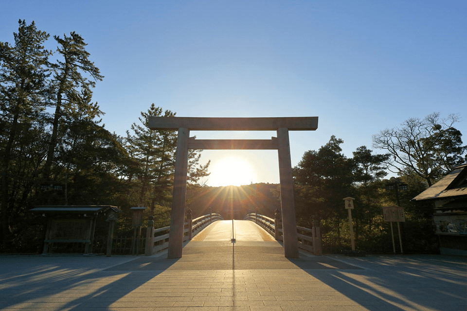 일상과 신성한 세계를 나눈다는 우지 다리를 건너 내궁으로. 삼종의 신기 중 하나인 야타의 거울을 모신 이 신사는, 일본에서 가장 신성한 신사의 하나로 여겨집니다. 황실의 어조신이자, 일본의 수호신인 아마테라스 오미카미가 모셔져 있습니다.