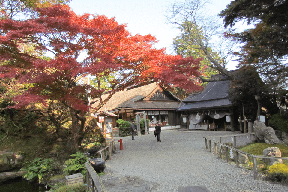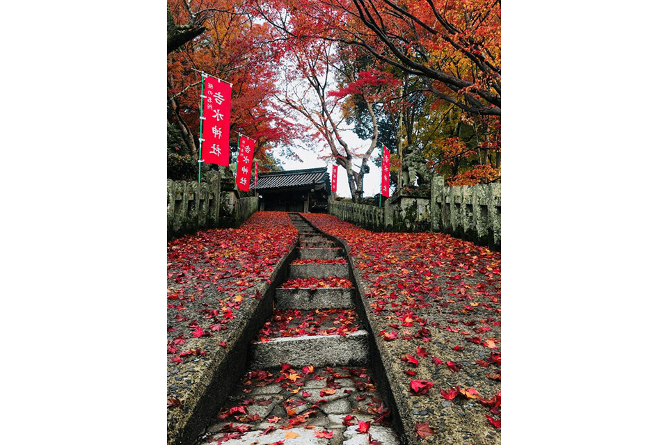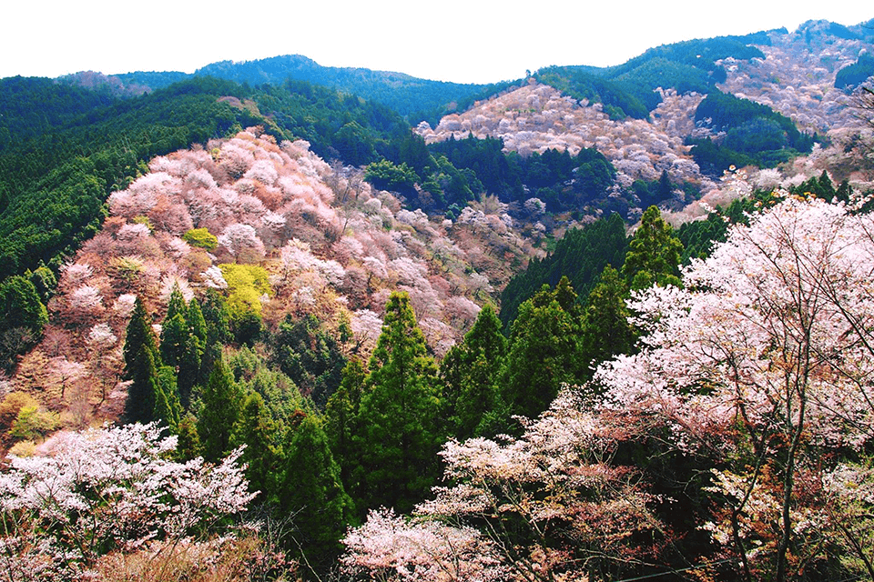 벚꽃 명소로 유명한 요시노 산의 중턱에는 여러 시대에 걸쳐 천황과 무장이 방문하던 역사적인 신사가 있습니다. 요시미즈 신사도 그 중 하나입니다. 봄에 와서, 일찍이 도요토미 히데요시가 한 것처럼 천 그루 벚꽃의 화려한 색깔을 감상하거나, 가을에 방문하여 빨간색과 금색의 불타는 듯한 단풍의 장대함을 만끽하십시오.