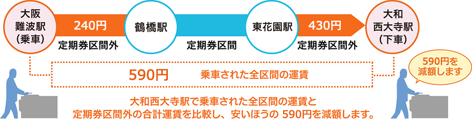 なお、1ヵ月(1日~末日)のご利用状況に応じ、次の①と②を比較して安いほうの運賃を適用します。