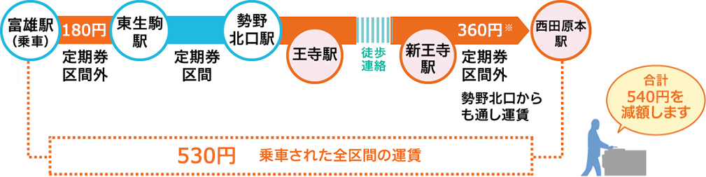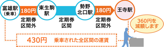 事前によくご利用になる区間(1区間のみ)をご自身でご登録すると、登録区間内の1ヵ月(1日~末日)の利用額上限が1ヵ月の定期運賃と同額になります。