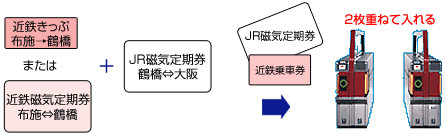 ●鶴橋までの近鉄のきっぷまたは磁気定期券などと、鶴橋からのJR磁気定期券などをお持ちの場合