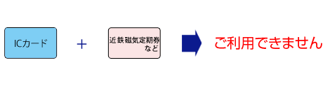 近鉄線で降車される時は、ICカードのご利用はできません。のりこし精算のお取り扱いをいたします。 近鉄線からJR線への乗り継ぎ時も同様にご利用できません。