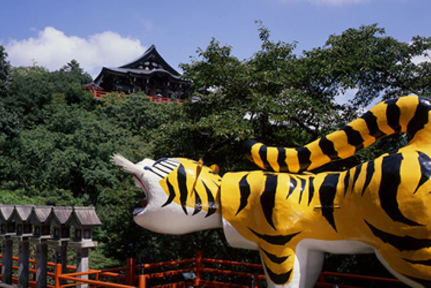 This is a temple where Prince Shotoku prayed for victory in battle. It is closely connected to tigers, and paper tigers and many other objects related to tigers can be seen throughout the precincts.