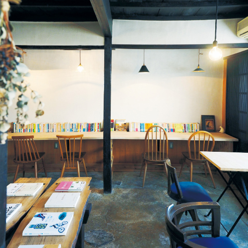 広々とした古民家を改装した、本とカレーの店。店主セレクトの本が並び、ゆっくりと読書を楽しめる。柔らかく煮込んだチキンを使用したチキンカリィ900円などのランチメニューや、ケーキなどのスイーツも。