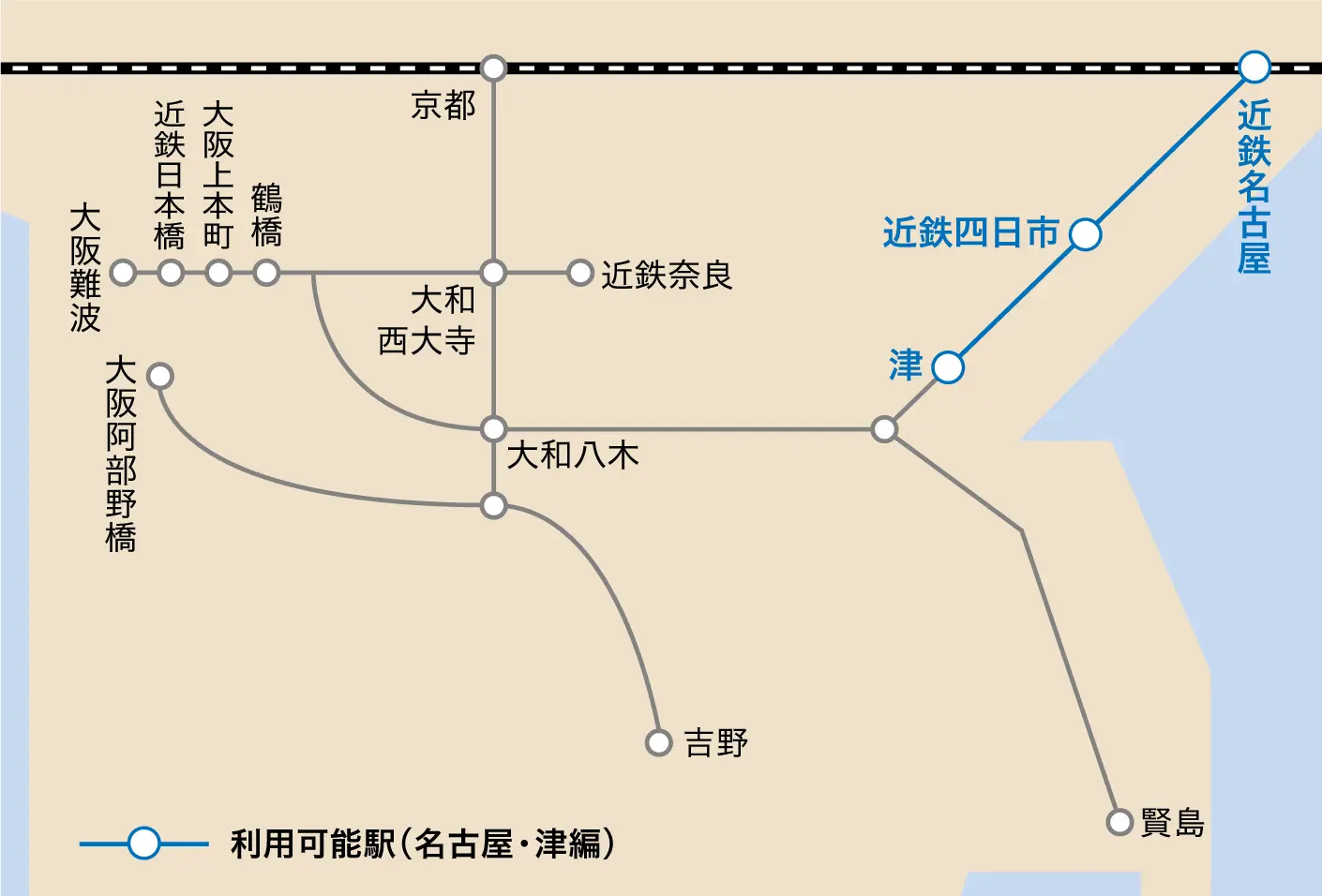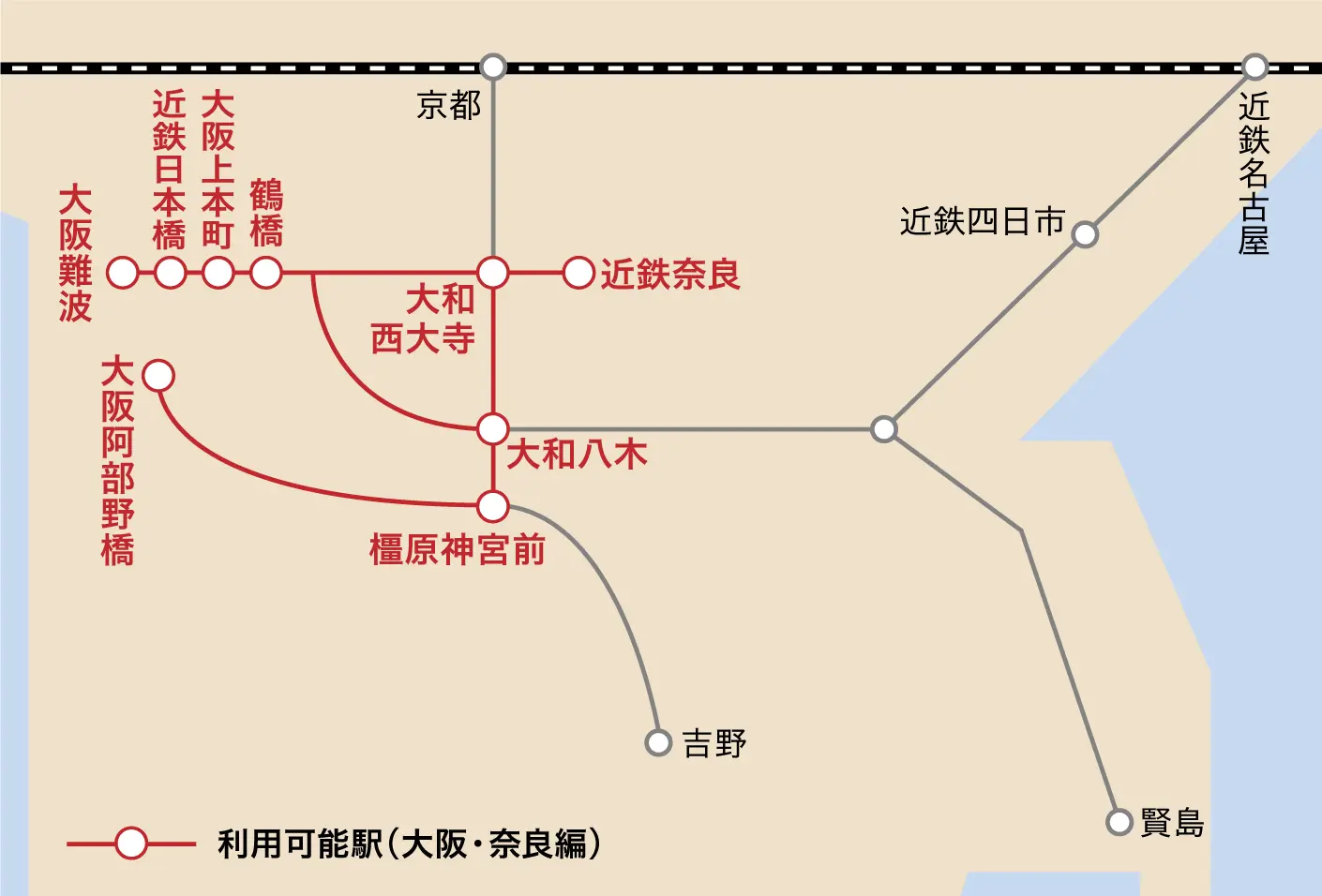大阪難波、近鉄奈良、京都、大阪阿部野橋、近鉄名古屋、津