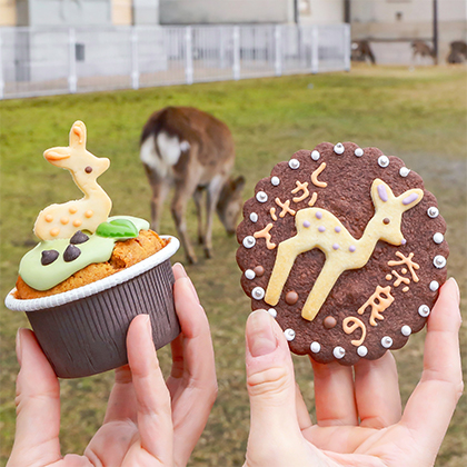 若草山を歩く鹿や鹿の角をモチーフにしたスイーツなど、