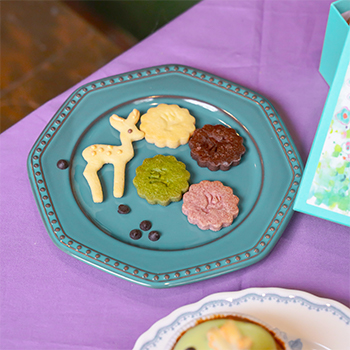 カラフルな「おいり」の中にちょこんと座る鹿のクッキーは、スタッフが手描きするため、一匹ずつ表情が違ってチャーミング。