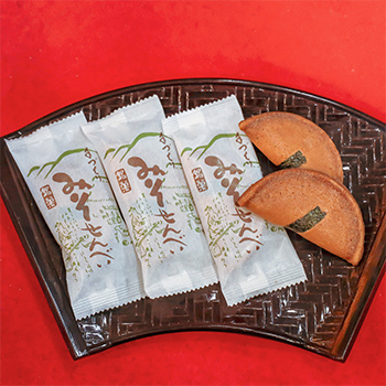 五徳味噌を生地に練り込んで焼き上げた、香ばしい風味の銘菓「みそせんべい」で知られている。