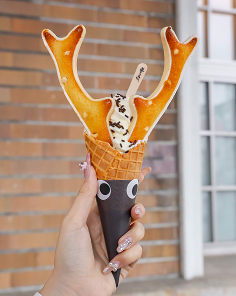 春の季節になると、鹿の角の先端が丸いことから「かわいい、お菓子になりそうだ」と、オーナーが“鹿の角”にこだわった店をオープン。