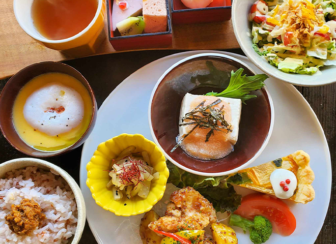 奈良県産の食材をつかった食事が楽しめるカフェ。