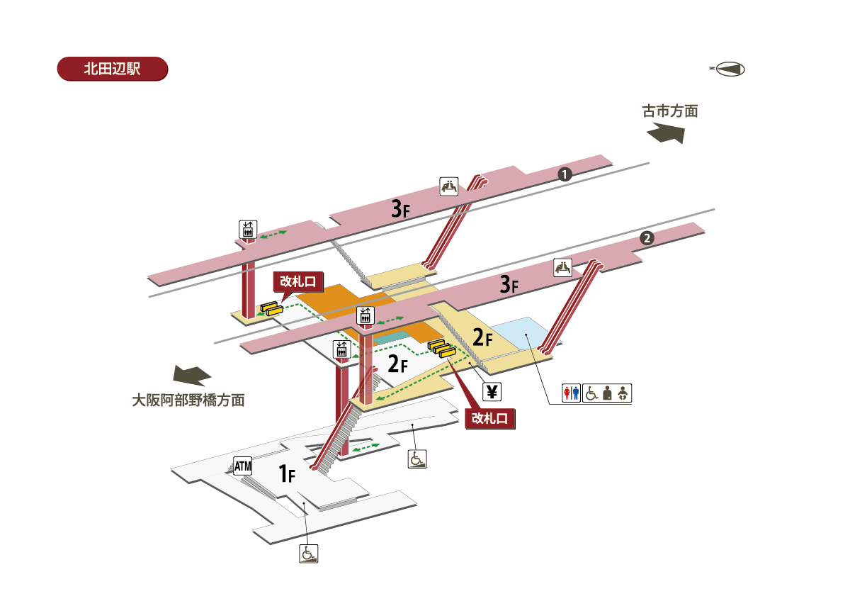駅構内図 北田辺駅